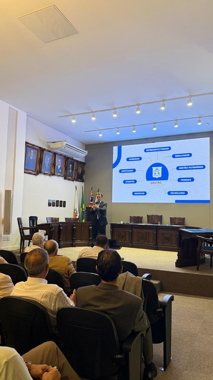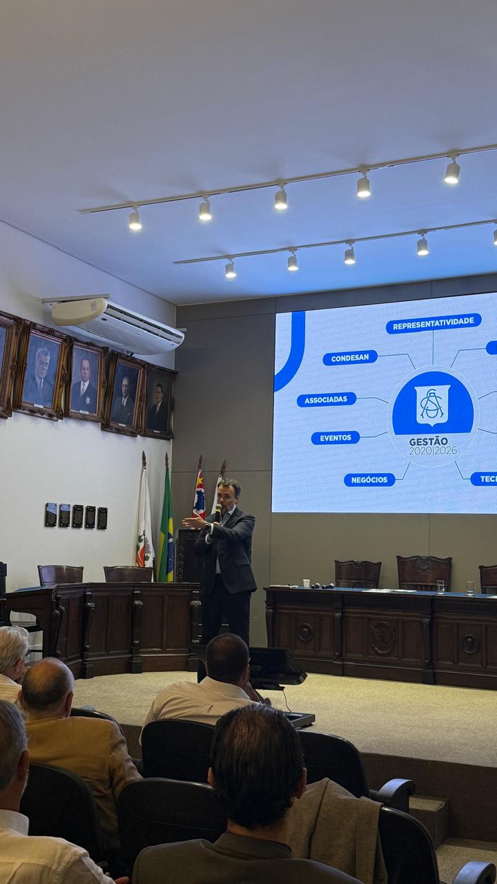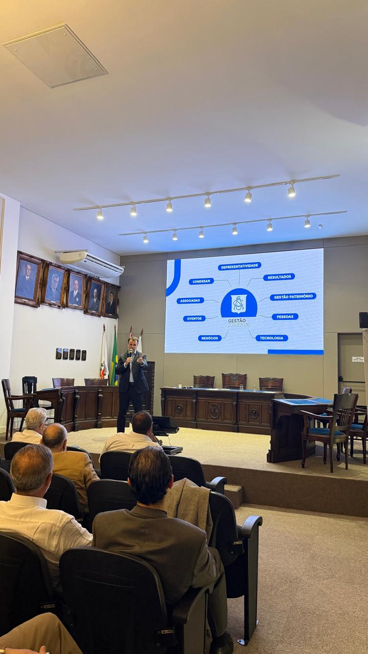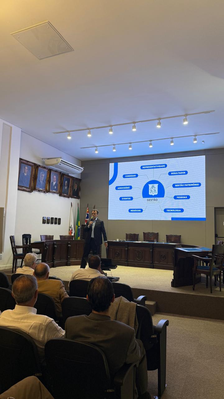 Ele também apresentou um resumo da gestão baseado nos pilares representatividade, resultados, gestão do patrimônio, pessoas, tecnologia, negócios, eventos, associadas, Conselho de Desenvolvimento Econômico de Santos (Condesan) e representatividade. “