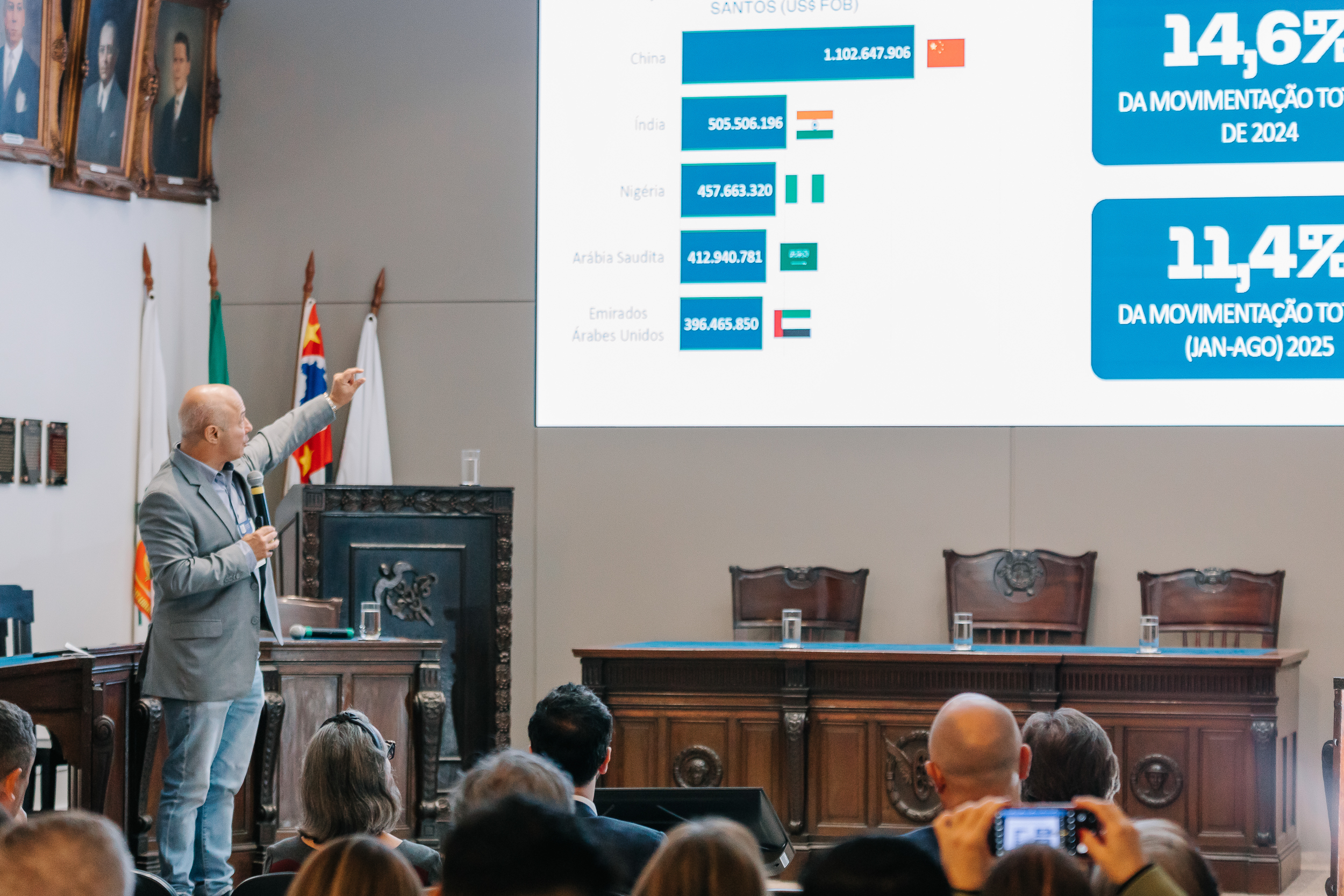 Os desafios para manter o açúcar um dos recordistas de exportação no Porto de Santos dominaram o 1º Sugar Day, que lotou o auditório da Associação Comercial de Santos (ACS) da última quinta-feira (dia 25) com autoridades, especialistas, exportadores e representantes da cadeia de negócios desta commodity. O evento também foi transmitido ao vivo pelo canal da ACS no You Tube, o AC Santos.