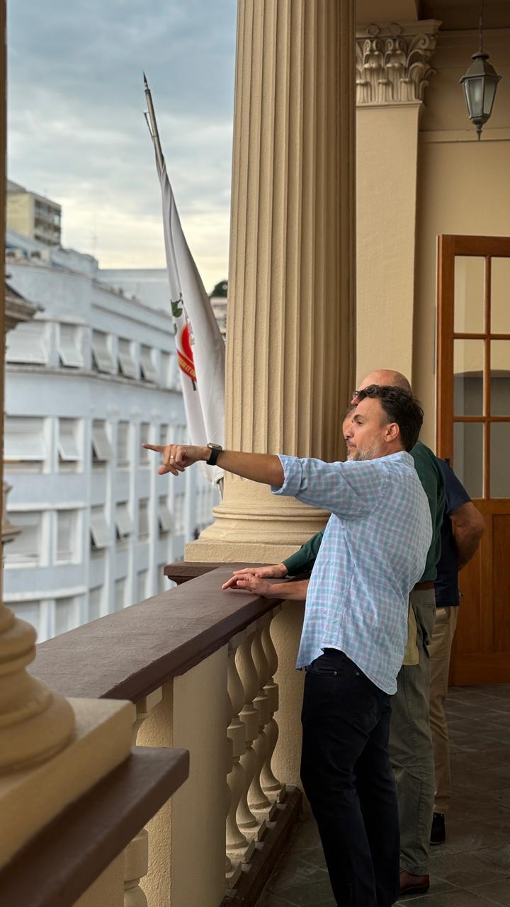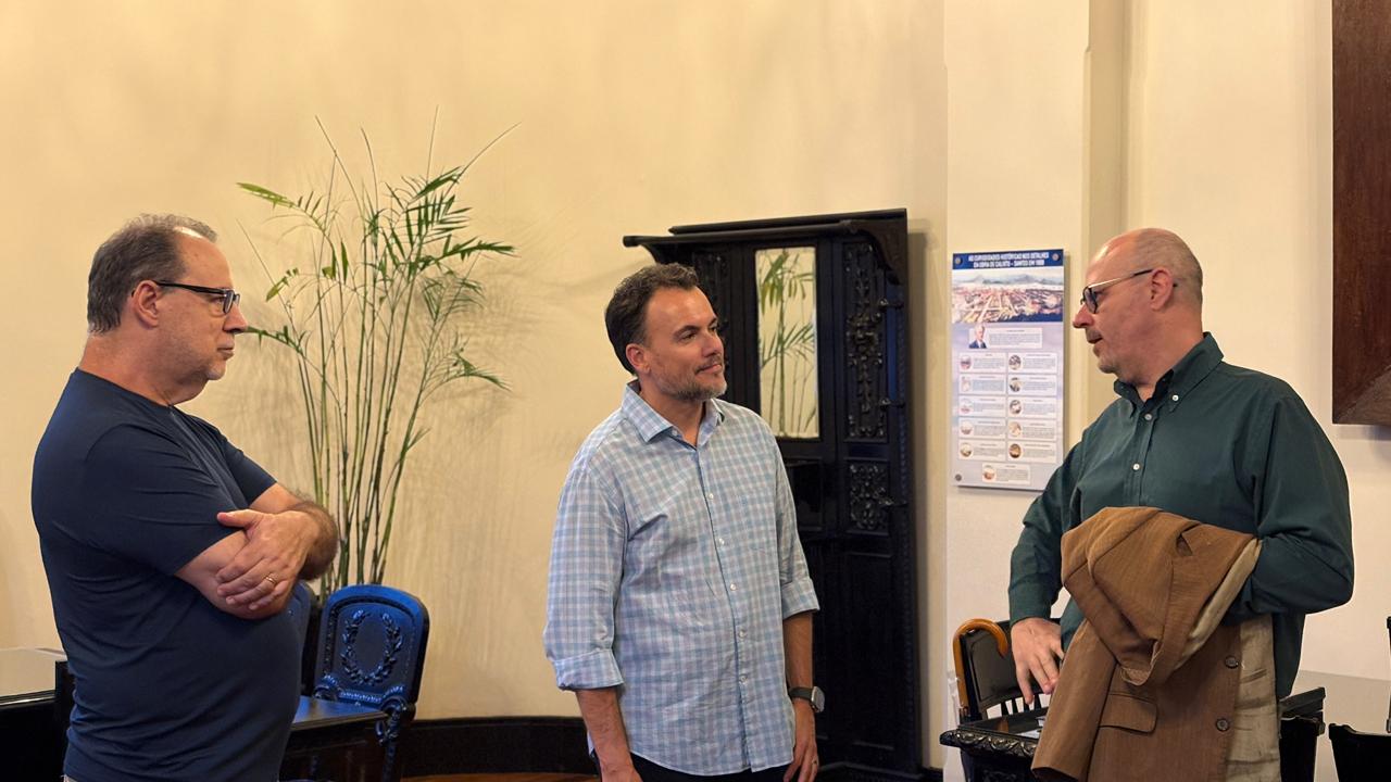 O adido cultural da Itália, Lilio Teodoro Guarneri, realizou uma visita institucional na última sexta-feira (16) ao prédio histórico da Associação Comercial de Santos (ACS), onde foi recepcionado pelo presidente da entidade, Mauro Sammarco, e pelo gerente executivo, Eduardo Lopes.