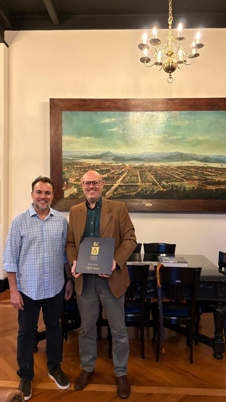 Ao final da visita, o adido cultural foi presenteado com o livro comemorativo dos 150 anos da Associação Comercial de Santos, que reúne a trajetória e a contribuição da instituição para o desenvolvimento econômico da cidade.