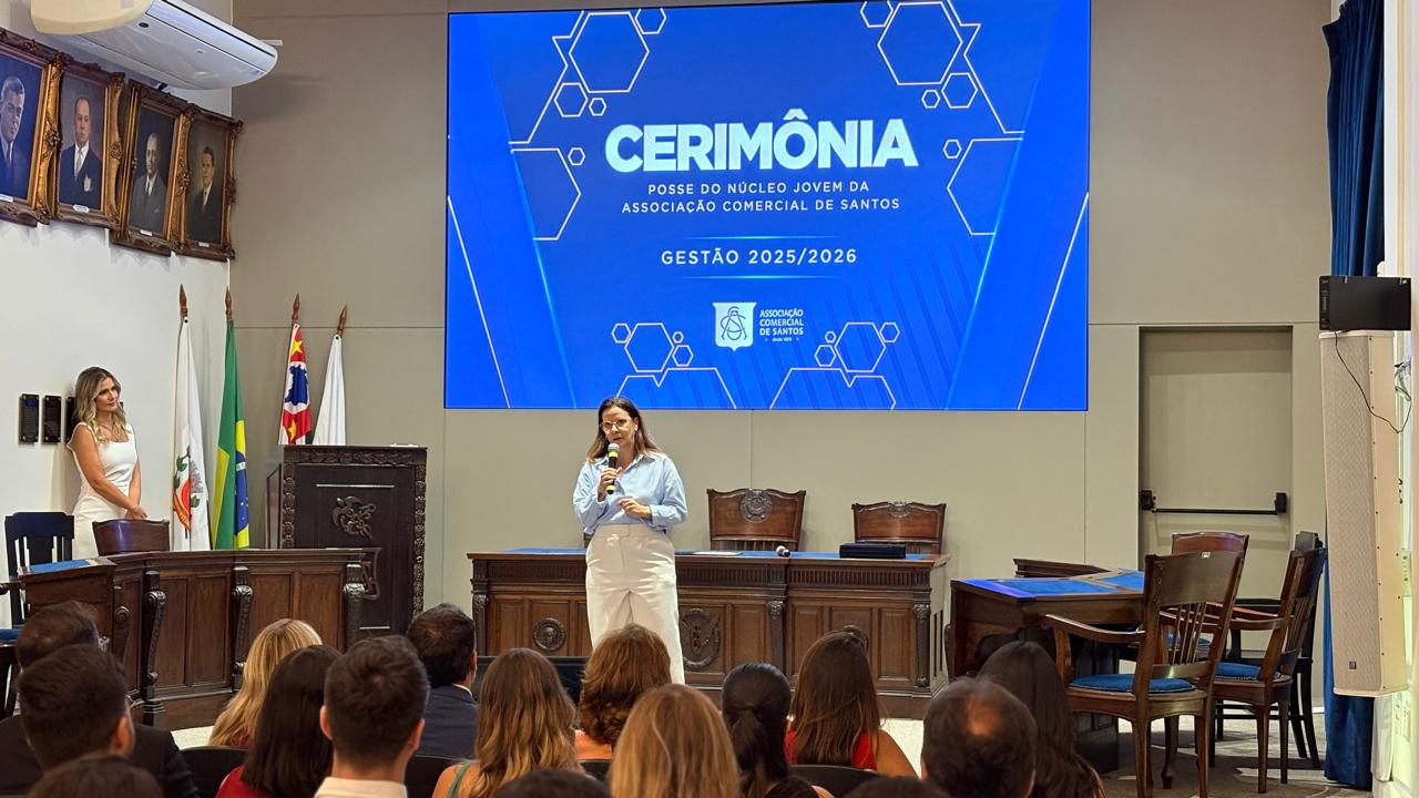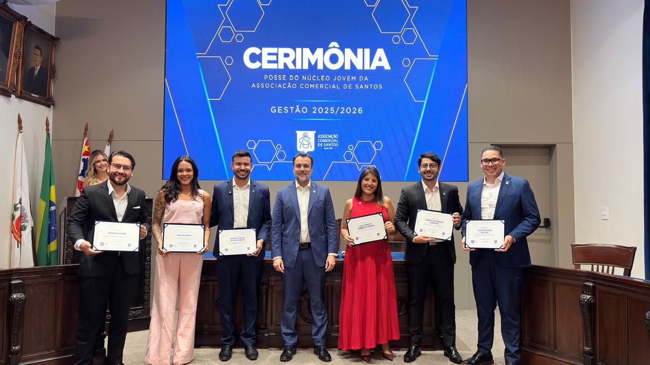A nova coordenação do Núcleo Jovem da Associação Comercial de Santos (ACS Jovem) tomou posse nesta segunda-feira (dia 8) para o período de 2025/2026, em cerimônia na sede da ACS, com a missão de aproximar ainda mais os jovens da instituição, gerar oportunidades reais a eles e conectá-los às empresas associadas.